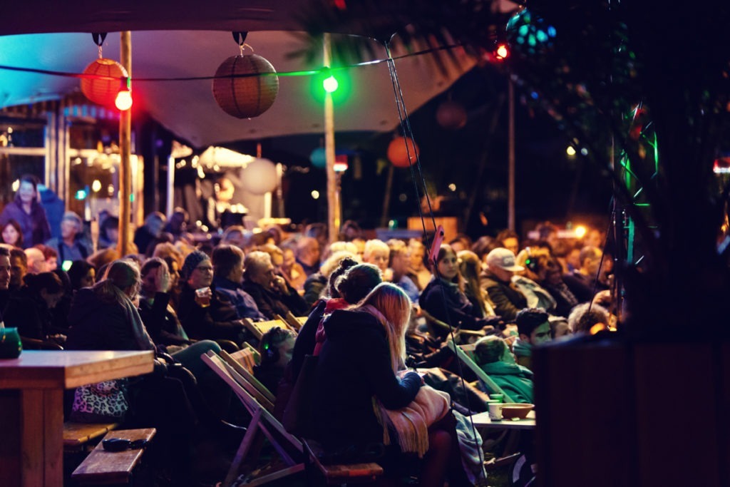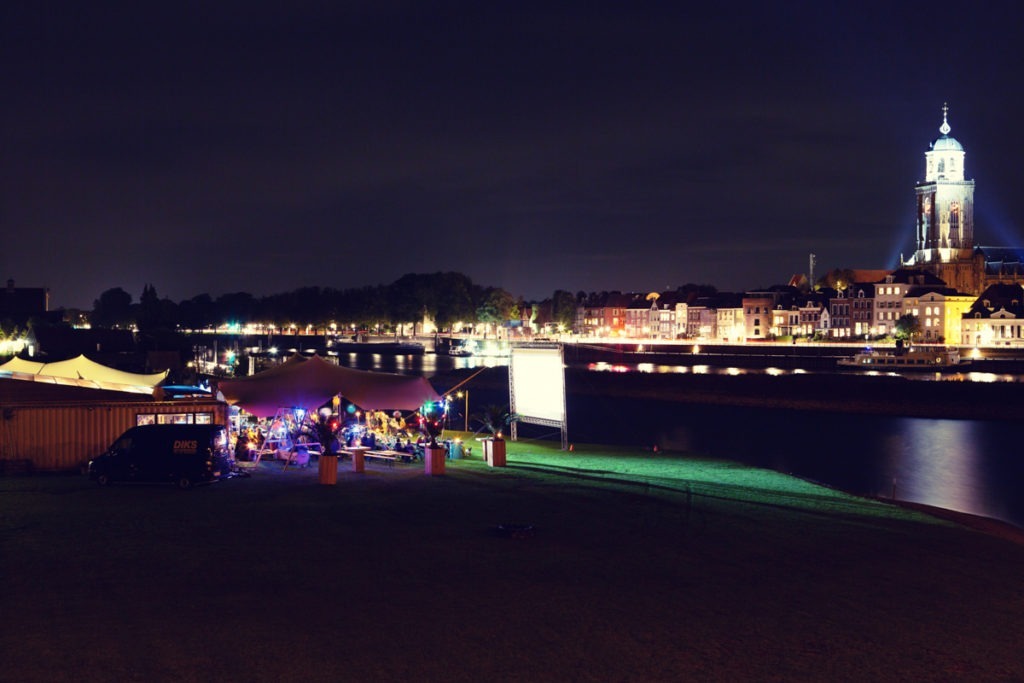 Een groot bioscoopscherm, het fantastische decor van de lampjes van onze eigen stad die schitteren over de IJssel, een fijne nazomeravond, strandstoeltjes, zitzakken, kaarslicht, fakkels, een kwalitatieve film, koptelefoons, lekkere hapjes, fijne mensen en drankjes uit onze barcontainer. Zomaar wat ingrediënten van nu al een magische avond bij Meadow op het Deventer Stadsstrand.